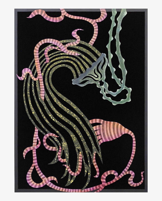 Mevlana Lipp’s works evoke memories of an unconscious indwelling knowledge of the genesis and origin of all life. Forming a black background, his murals show seemingly familiar figurative elements and floral shapes, cut out by the artist from panels of wood and arranged on velvet, emerging in glowing colours. They become sensuous places of yearning with their own deeply hidden memories, places through which Mevlana Lipp draws attention to paradise and original creation.